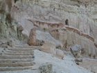 در دل كوه شهید در جزیره قشم اتاقهایی با دست كنده شده و به نظر می رسد پرستشگاه میترا است. در این محل سفالهای اشكانی بسیاری نیز كشف شده است. نمونه این معابد در غرب ایران دیده میشود. این حفره ها كه در دل كوه كنده شده اند شامل هال، راهرو و اتاقهایی در دو طرف هستند. ورودی های این معابد در سینه كوه قرار دارند.بر دیوارهای این معابد صدفهای بسیاری دیده میشود
