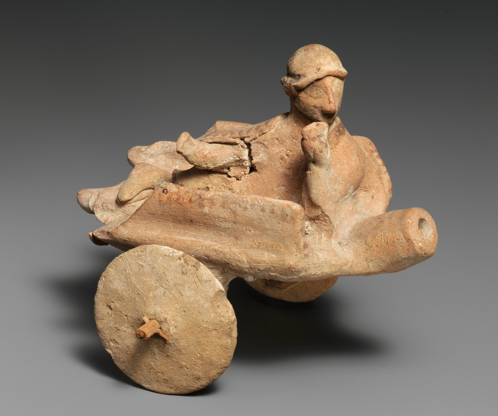مجسمه سفالی دست ساز مردی که سوار ارابه ای شده است - قبرس 600-480 پیش از میلاد