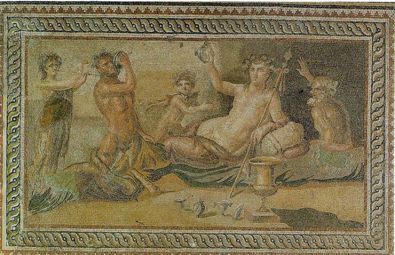 این طرح در یکی از اضلاع اتاق تس شکل قرار داشت و هرکول از پوست آفتاب سوخته خود قابل شناسایی است و دیوناسوس از روی عصایش. Worcester art museum |