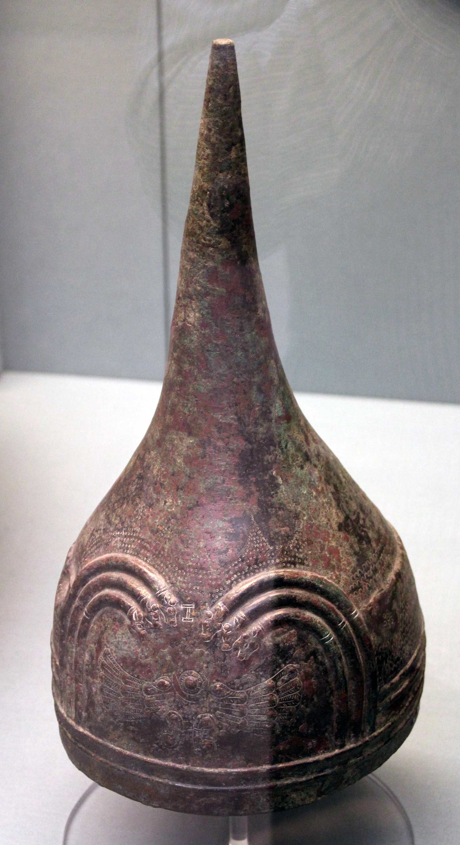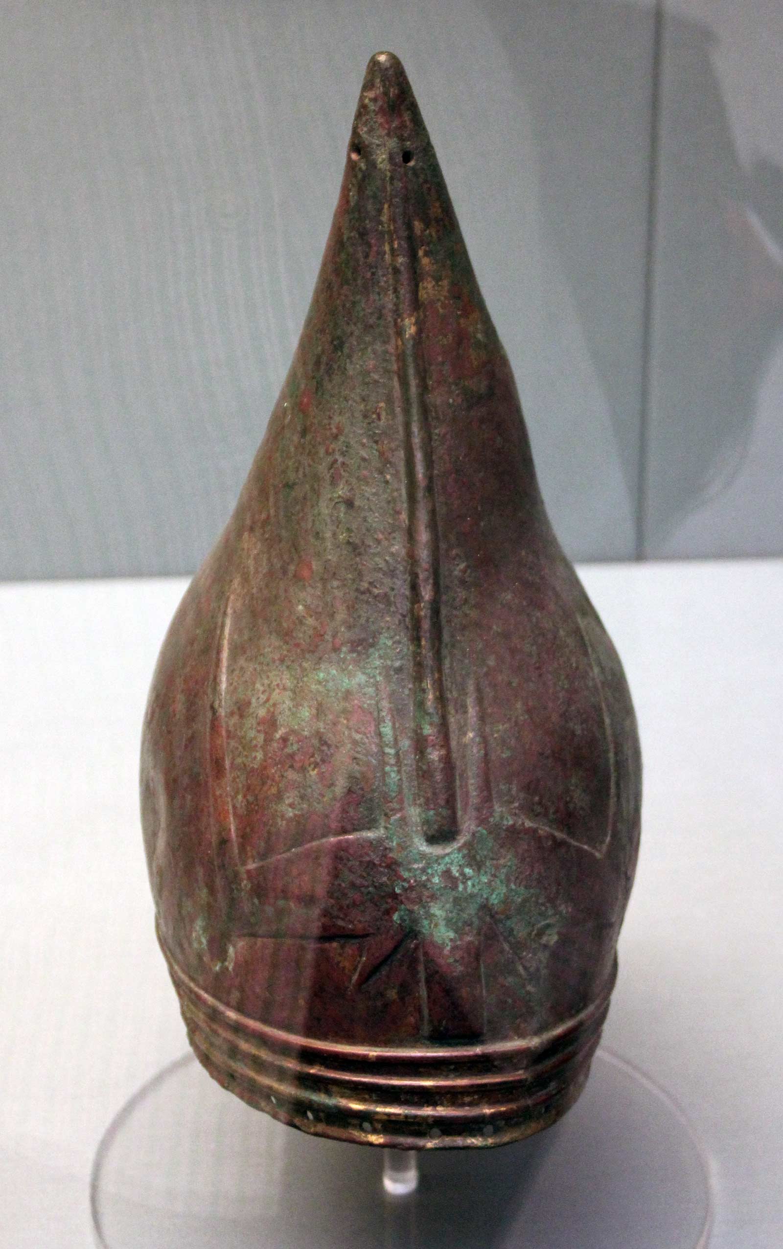کلاه خود اورارتویی - طراحی کلاه ها به صورتی است که تیر تیرکمان را رد کنند. سوراخ کنار کلاه برای ریسمان چرمی بوده است.