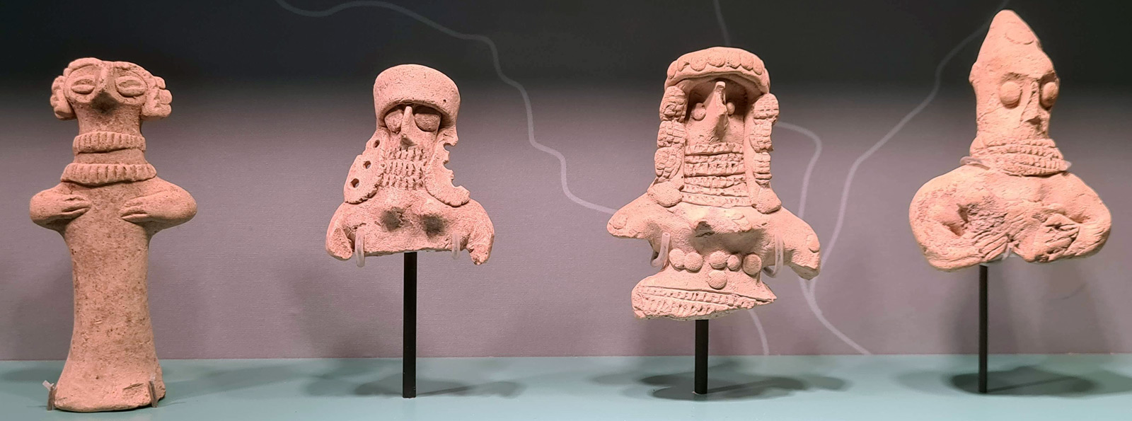 قطعاتی از مجسمه های گلی زن با گردن بند - محل کشف عراق - 1900 تا 1700 پ م