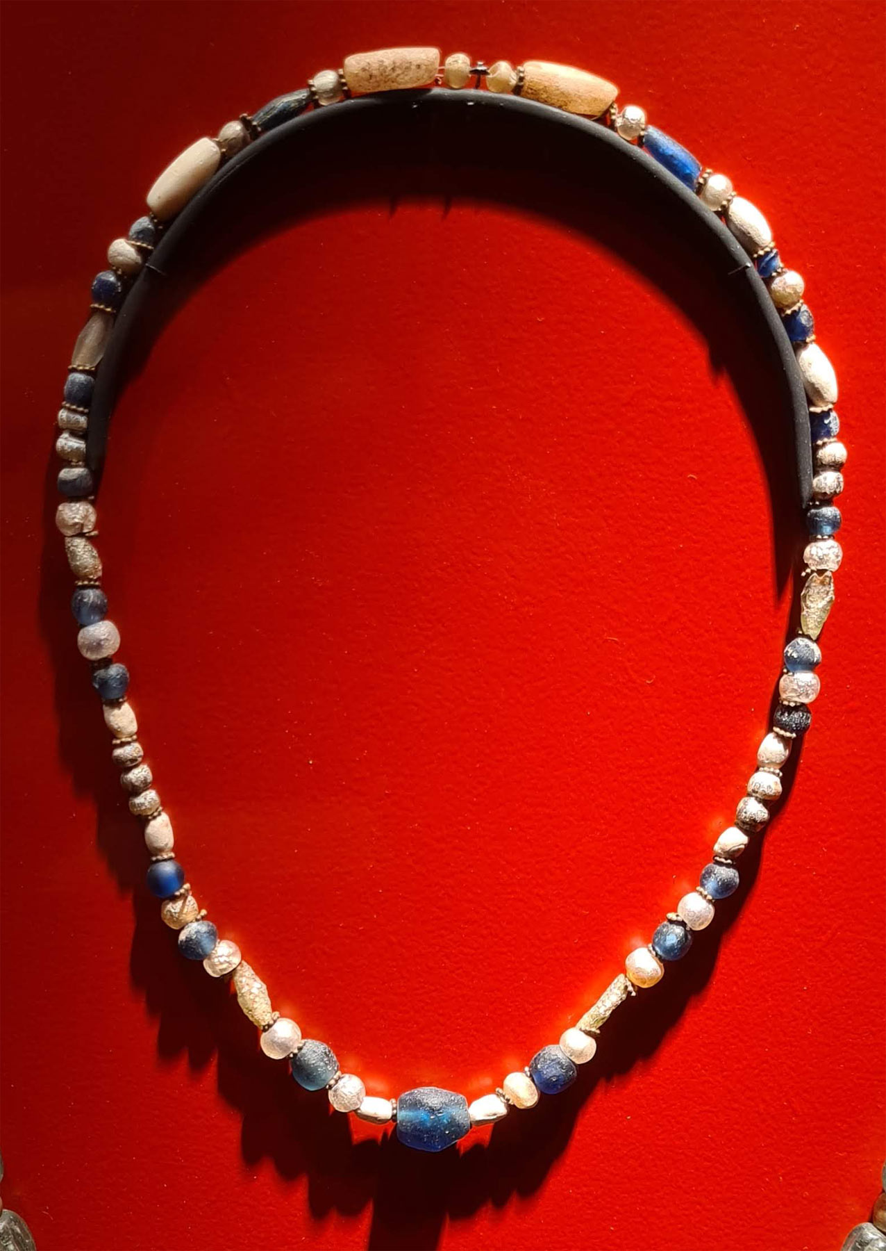 گردن بند اشکانی به همراهتیله های شیشه ای و طلای ملیله دوزی شده - سده دوم پیش از میلاد تا دوم میلادی