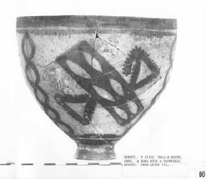 گلدان كشف شده در تل باكون با نقاشی های هندسی