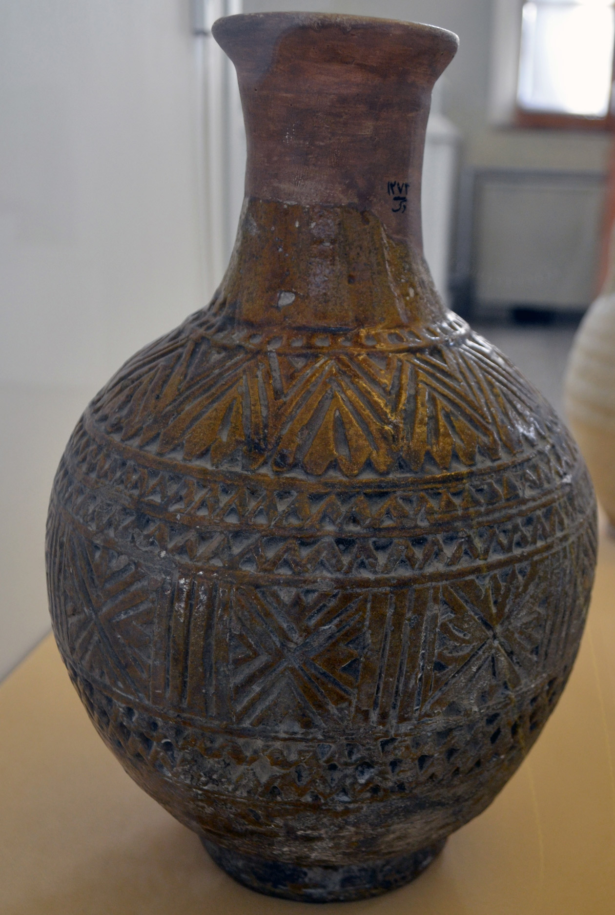 کوزه سفالی با نقش کنده – کاشمر- موزه ملی ایران