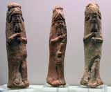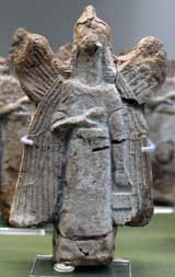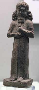 حفاظت از خانهدر بین النهرین رسم بود مجسمه خدایان مختلفی را در زیر خانه یا در حیاط خانه دفن می کردند تا از خانه محافظت کنند. یکی از آنها خدای کم قدرتی به نام لهمو بود که همیشه به کمک خدا اِآ می آمد. مجسمه های لهمو در کنار اتاق یا در گوشه حیاط دفن می شد. آپکالو به شکل انسانی است که لباسی از با فلس ماهی پوشیده است. او از طرف خدا اِآ دانش را به انسان منتقل کرده است. در برخی معابد هم روحانی ها با پوست خرپنگ های بزرگ دجله برای خود لباس ماهی درست می کردند. مجسمه های آپکالو در زیر بنای خانه ها دفن می شد تا از خانه دفاع کند. |