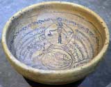 سنگ کوچک کتیبه دار کوچک جهت آویزان کردن که متنی است برای حفاظت انسان از شیاطین - هفت نشانه در متن هفت بار تکرار شده اند. |