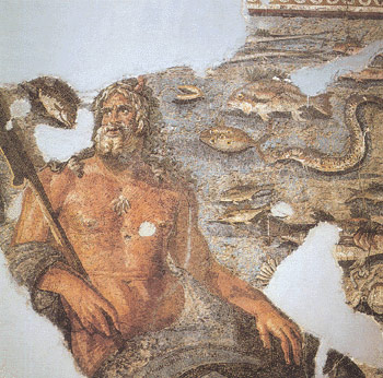 این طرح در یکی از اضلاع اتاق تس شکل قرار داشت و هرکول از پوست آفتاب سوخته خود قابل شناسایی است و دیوناسوس از روی عصایش. Worcester art museum |