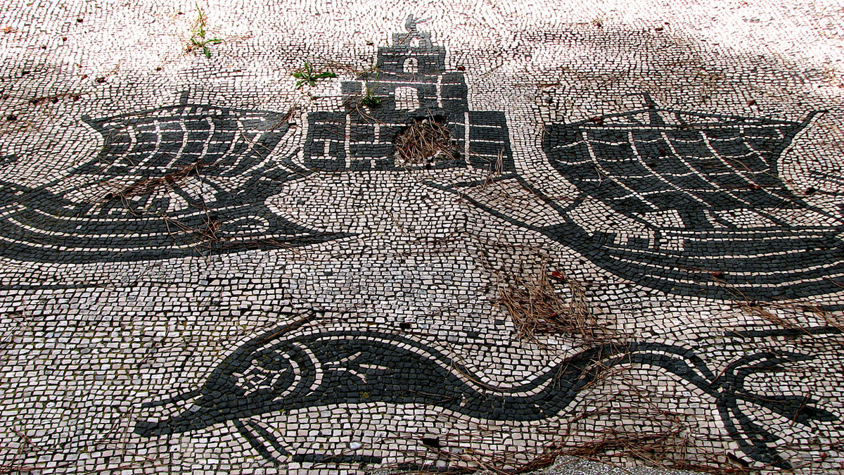 در میدان کار استان استیادر نزدیکی روم، هر مغازه یک طرح موزاییک در مقابل خود داشت که کار خود را توضیح می داد. برای مثال یکی از آنها طرح دو کشتی دارد که دلفینی نیز آنها را همراهی می کند. سده دوم یا سوم میلادی