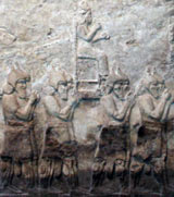 تسلط آشور بر بابلدر 734 پ م موکین زری یکی از روسای قبایل کلدانی توانست بابل را فتح کند. تیگلات پیلسر سوم نیرو به بابل فرستاد و نیروهای کمکی او با استقال مردم بابل مواجه شدند. اما فتح بابل سه سال طول کشید زیرا کلدانی ها بسیار قوی بودند. کلدانیان به سرزمینهای خود در جنوب بابل فرار کردند. آشوری ها هم به تعقیب آنها رفتند و سراسر سرزمین و قبیله آنها را نابود کردند. آشوری ها توانستند بعد از 400 سال پادشاهی بابل را کامل به دست بگیرند و تا 626 پ م آنرا در اختیار خود نگه داشتند. در دوره سارگون دوم،در سال721 پ م مردوک اپلاایدین دوم در بابل با پشتیبانی ایلامیان اعلام استقلال کرد. سارگون او را شکست داد و تعداد بسیاری از ساکنان بابل را کوچاند. او با اورارتو نیز درگیر جنگ شد و کمیریان را هم در آناتولی شکست داد. پس از سارگون، سناخریب شاه شد. او نیز سیاسیتهای سارگون در کنترل بابل و و گسترش سرزمین را ادامه داد. او در سال 681 توسط فرزندانش کشته شد. |