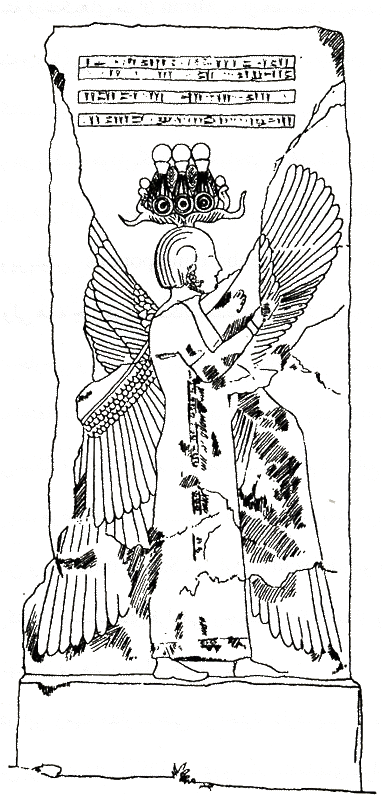 فرشته ای كه در كاخ كورش قرار دارد.نوشته بالای این تصویر كنده شده است