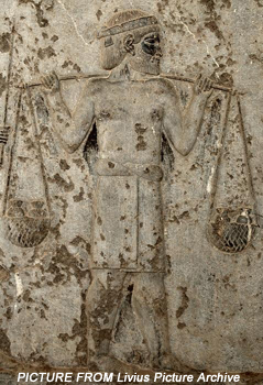 کیسه هایی که حاوی خاک زر یا ادویه است و یکی از هندوان با ترازویی که بر دوش دارد حمل می کند. گور خر یا قاطر و تبر دو دمه جنگی هدایای این افراد است