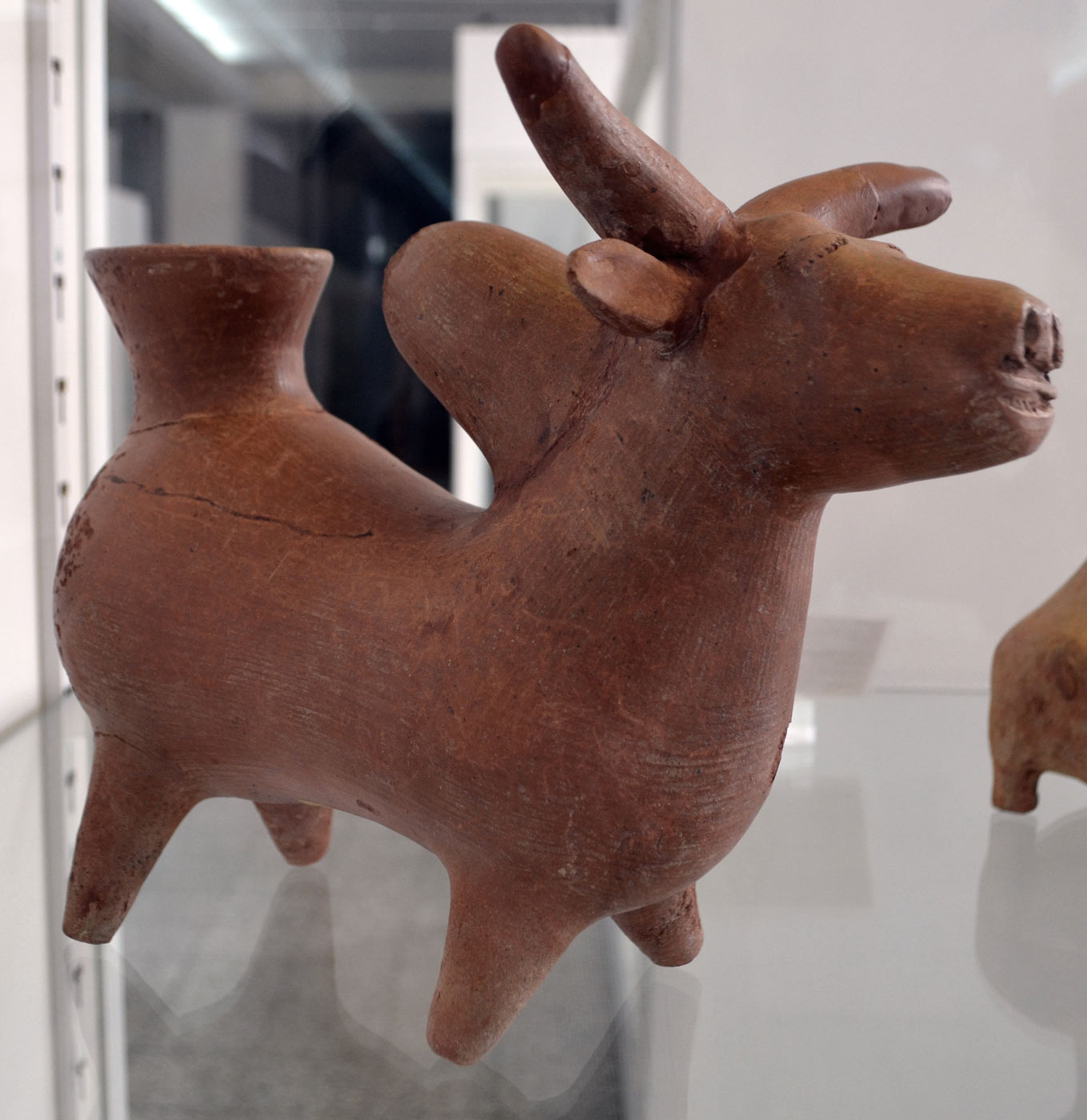 ریتون سفالی به شکل گاو کوهان دار- رشی گیلان- موزه ملی ایران