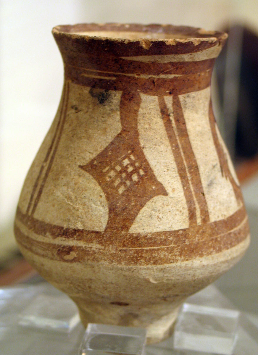 ظروف سفالی نخودی با نقوش قهوه ای- شهر سوخته- هزاره سوم پیش از میلاد – موزه ملی ایران