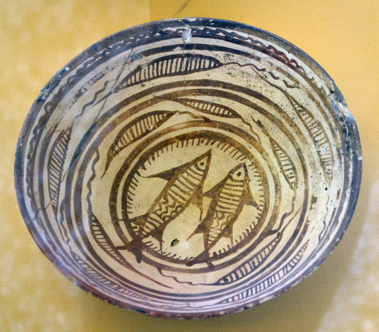 ظرف سفالی با نقش چند ماهی- هزاره سوم پ م – شهر سوخته سیستان – موزه ملی ایران